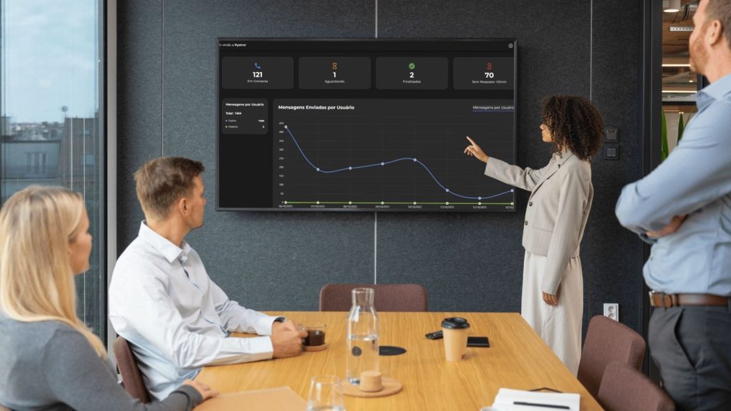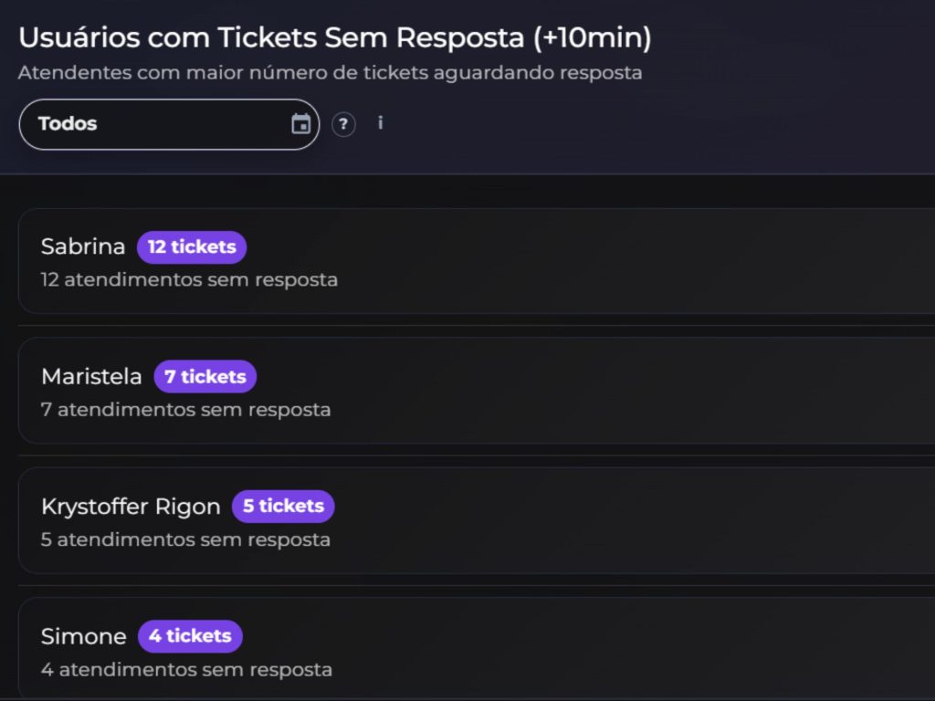– Controle de tempo de resposta por atendente, incluindo monitoramento de conversas acima de 10 minutos sem retorno